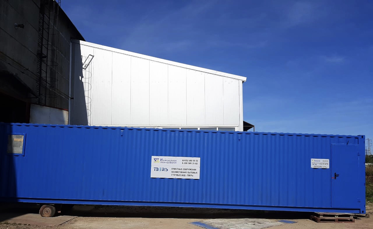 Станция очистки бытовых сточных вод "ТВЕРЬ-25С" представляет из себя утепленное здание из блок-модулей, установленных на фундаменте, со всем технологическим оборудованием внутри.